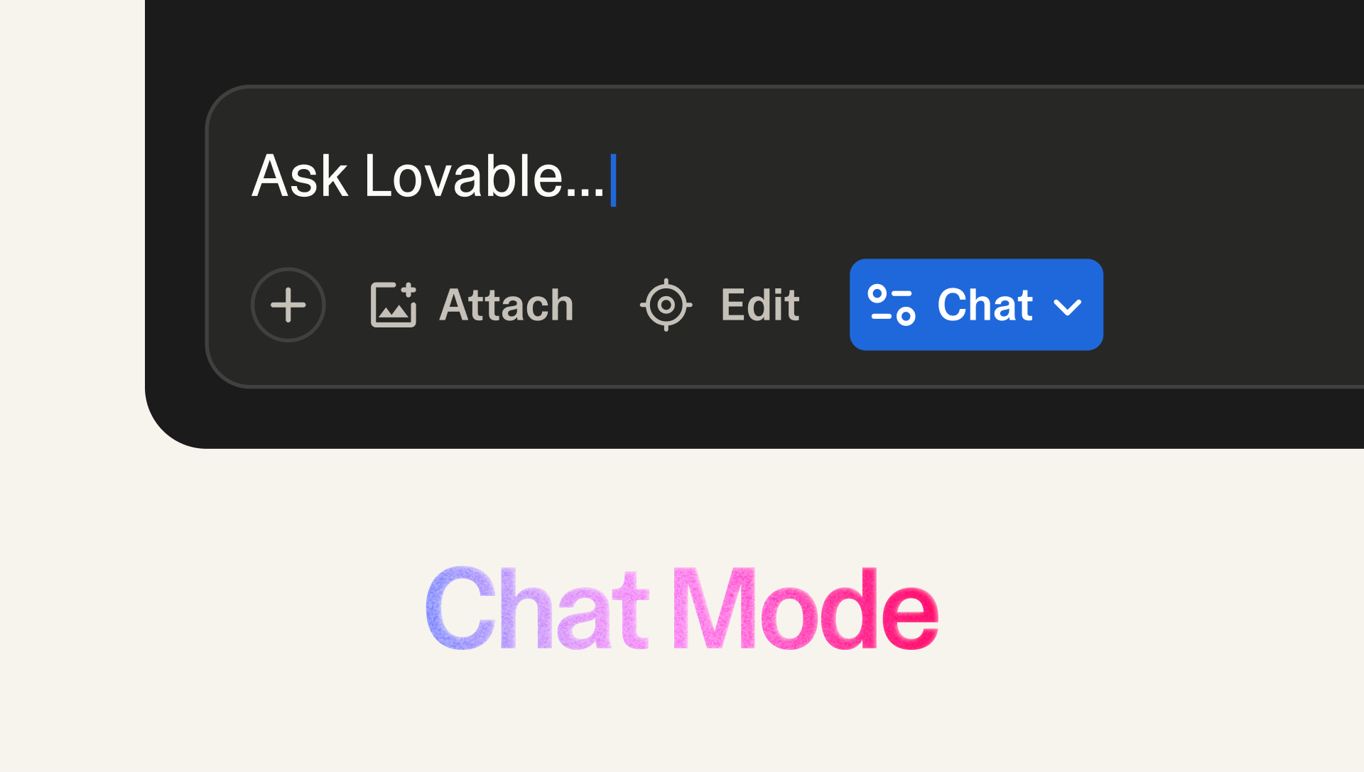 Lovable is now smarter because of our new Chat Mode Agent that doesn't make edits to the code. This mode is perfect for asking questions, planning your project, and debugging.